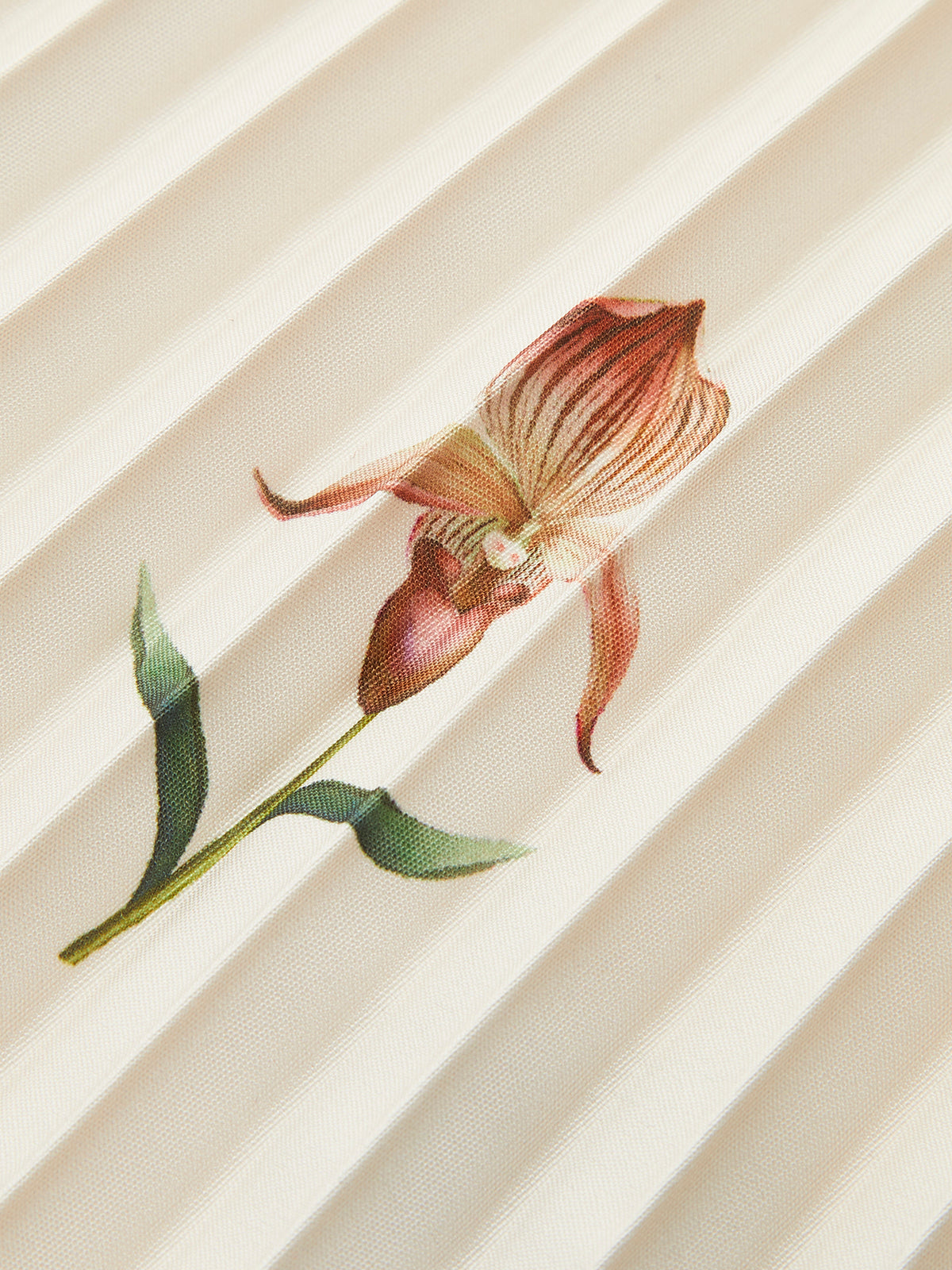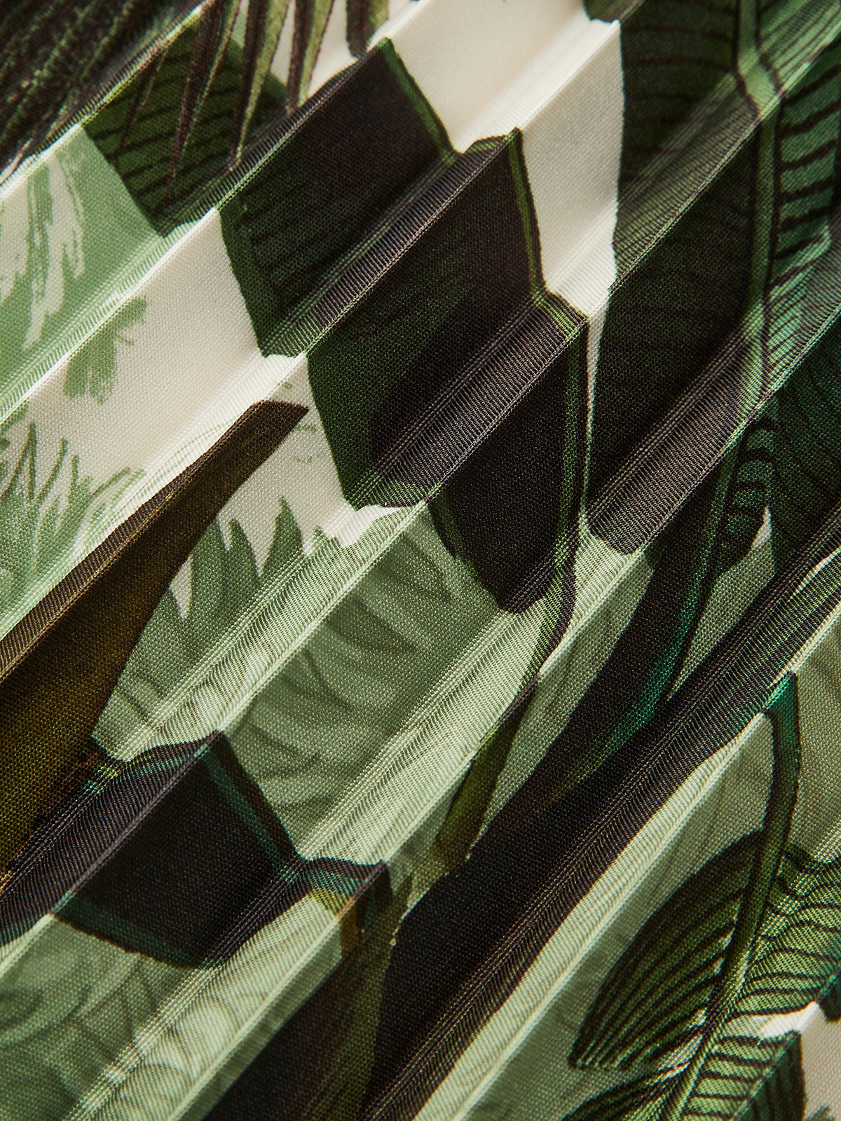 Boho Baskı Orta Bel Bol Fırfırlı Fermuarlı Etek