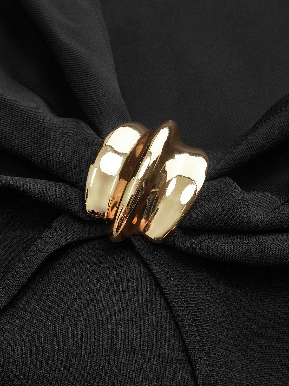Metal Tokalı Yarım Balıkçı Yaka Mini Elbise